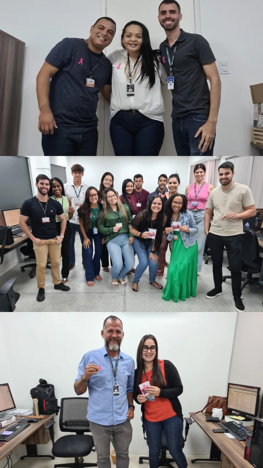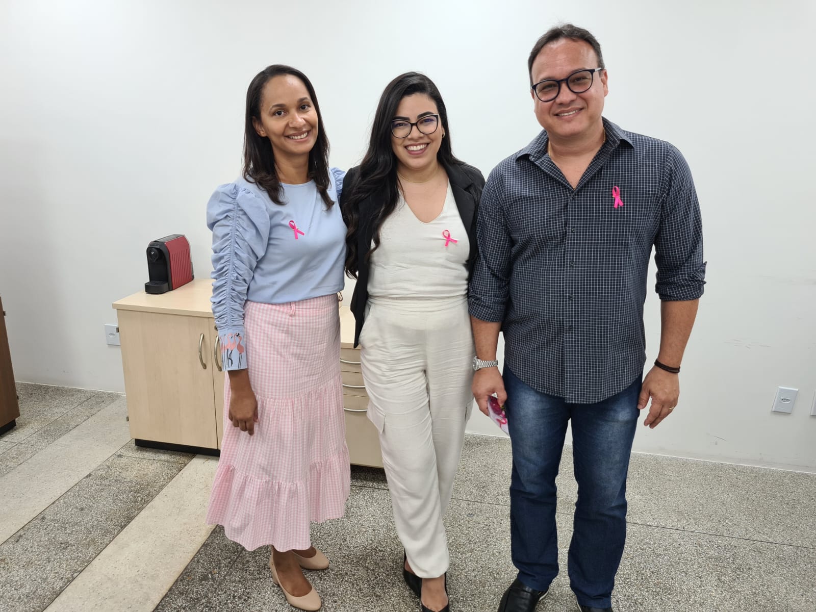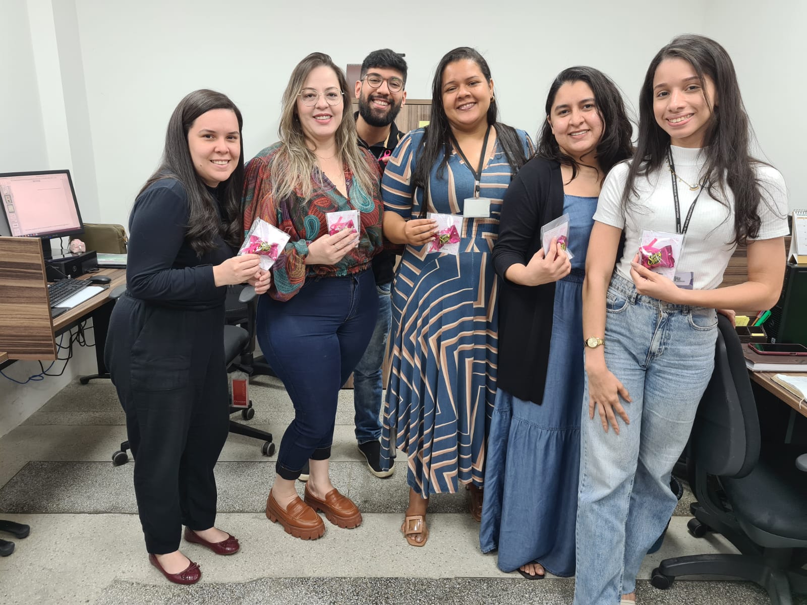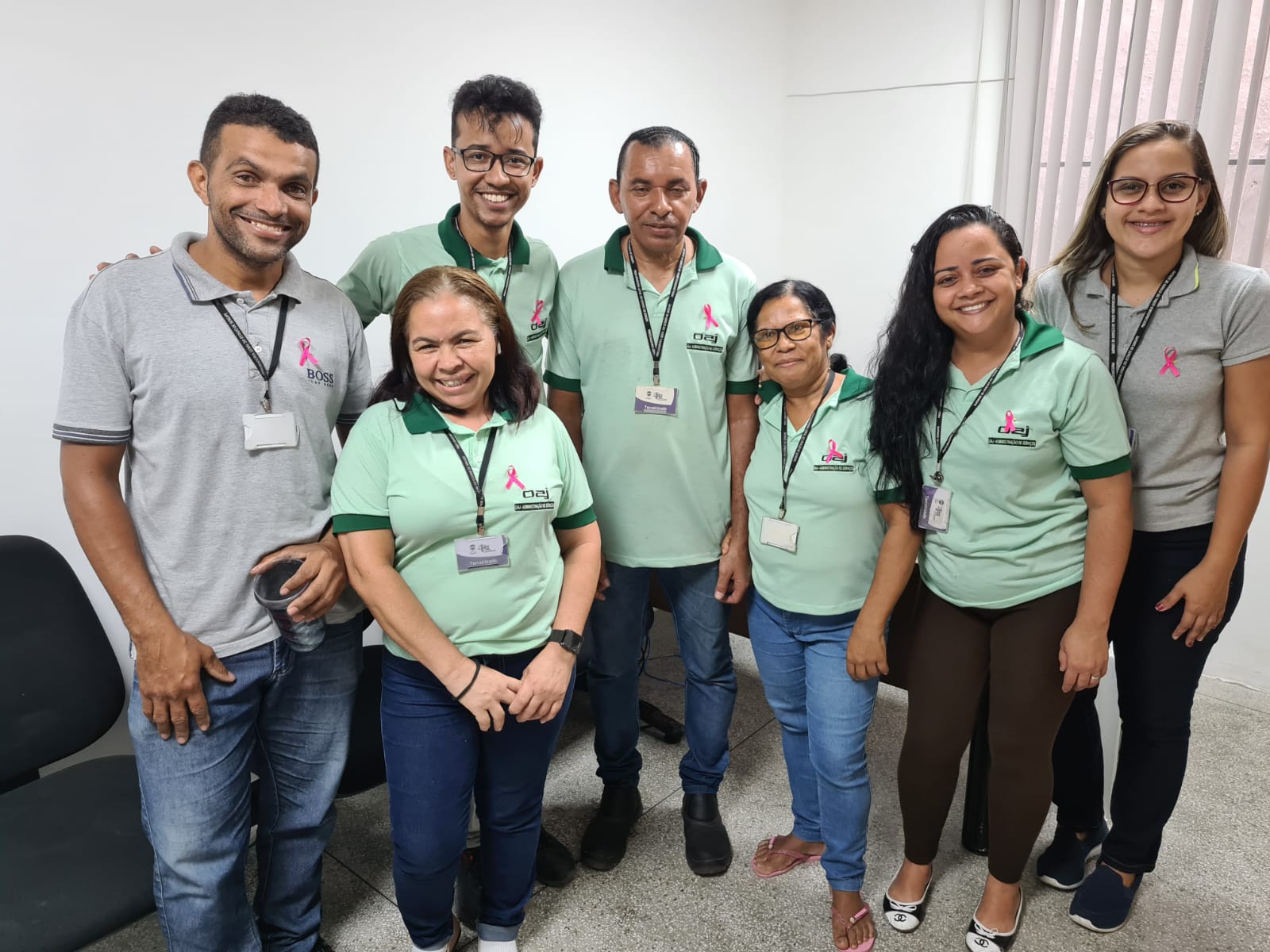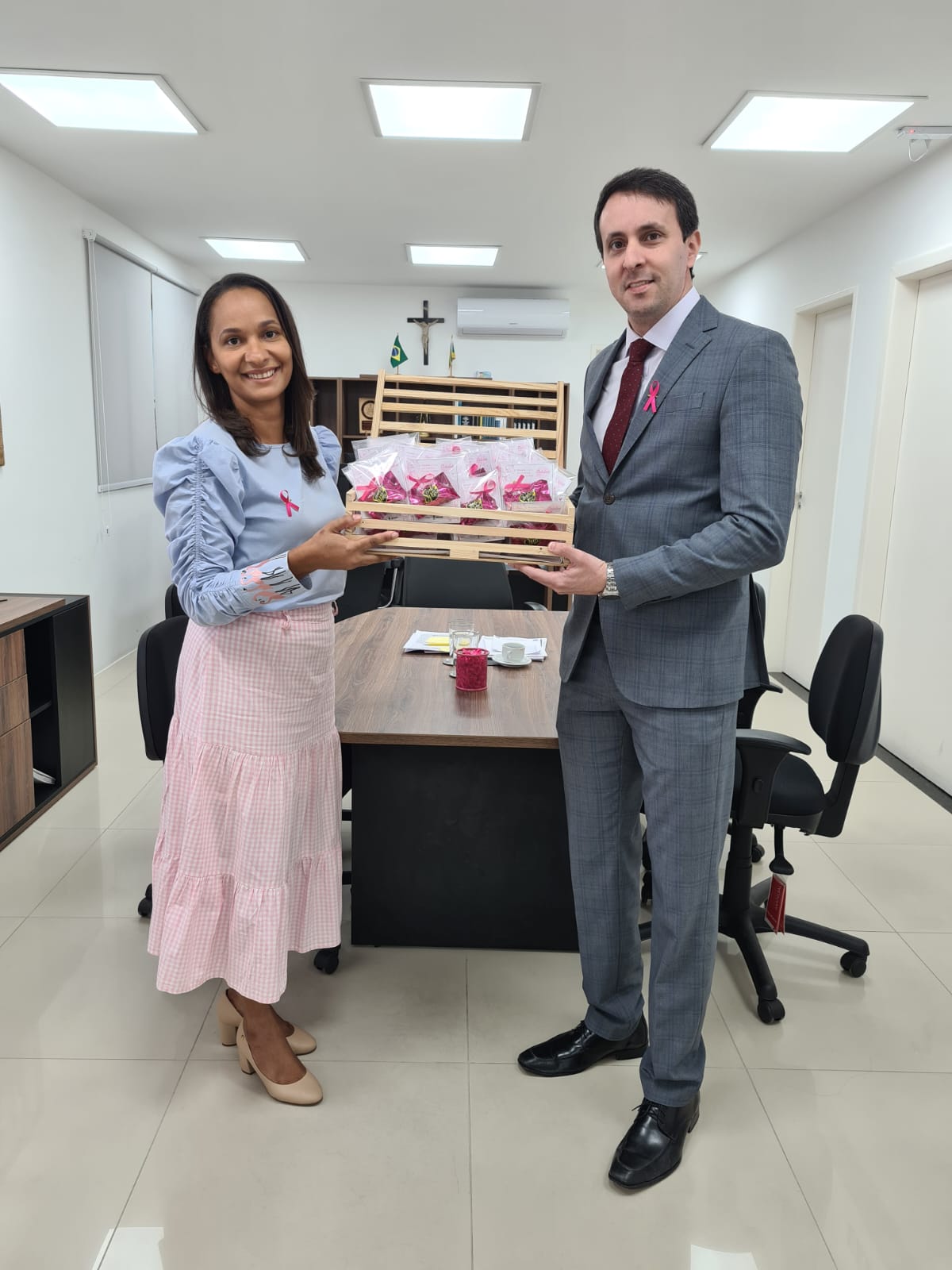 Os procuradores, servidores, terceirizados e estagiários da PGE/SE reconheceram a relevância da campanha e vestiram broches cor-de-rosa, que receberam do Procurador-Geral, Carlos Pinna Júnior e da Corregedora-Geral, Gilvanete Losilla.