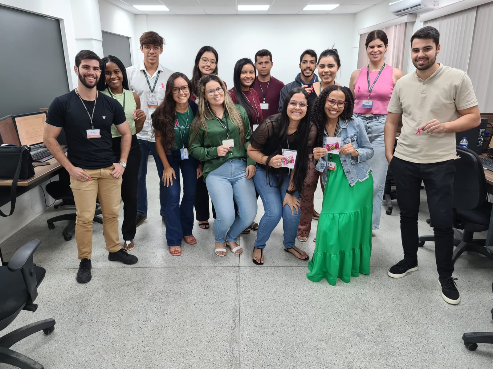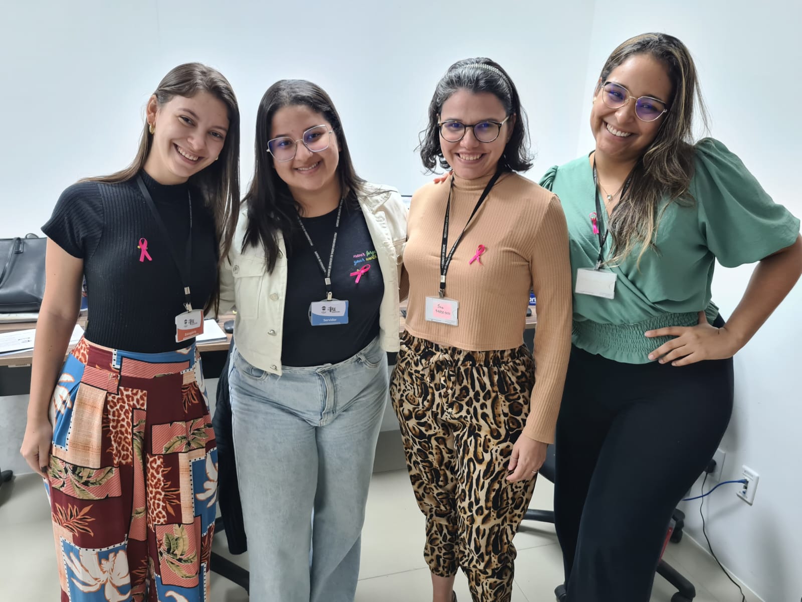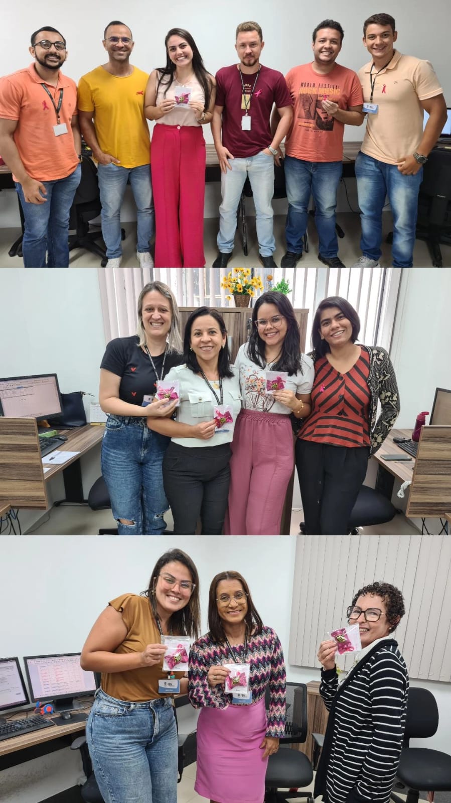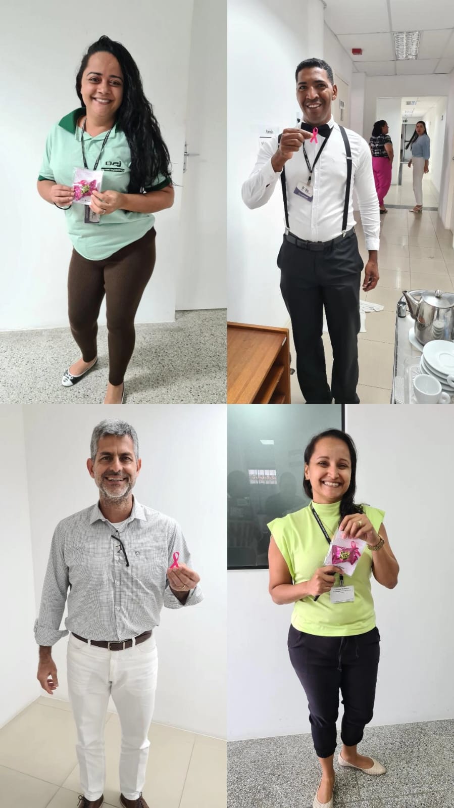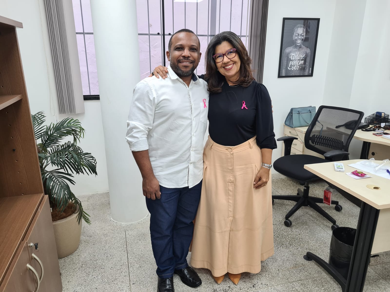 Os procuradores, servidores, terceirizados e estagiários da PGE/SE reconheceram a relevância da campanha e vestiram broches cor-de-rosa, que receberam do Procurador-Geral, Carlos Pinna Júnior e da Corregedora-Geral, Gilvanete Losilla.