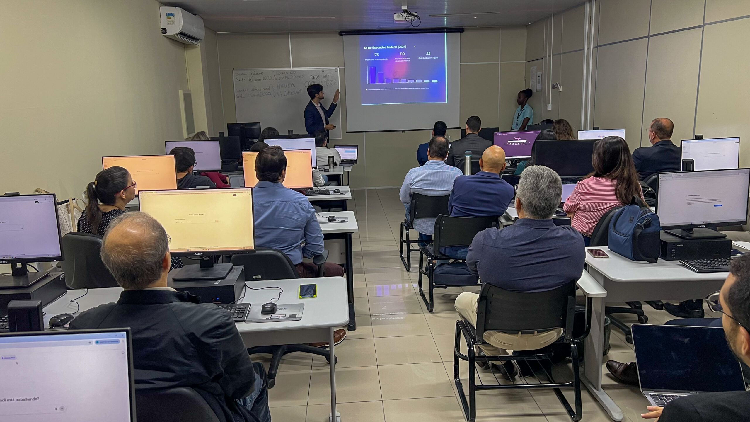 Com duração de dois dias, o curso abordou o uso eficiente e direcionado de softwares de IA na gestão pública